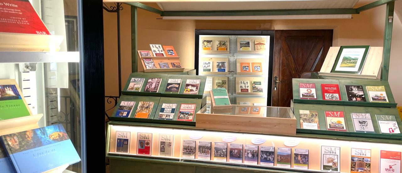 Al bookshop del Museo sono in vendita i libri delle collane edite dal METS, i numeri della rivista SM Annali di San Michele e altre pubblicazioni a tema