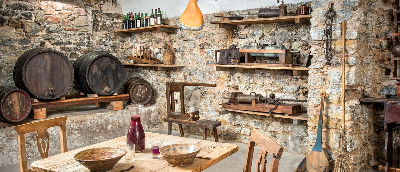Nella càneva, locale ricavato nel seminterrato o al pianterreno dell’abitazione, si tengono al fresco le provviste alimentari: speck e lucaniche, patate, mele, vino e formaggi. Caratteristiche le volte a botte.