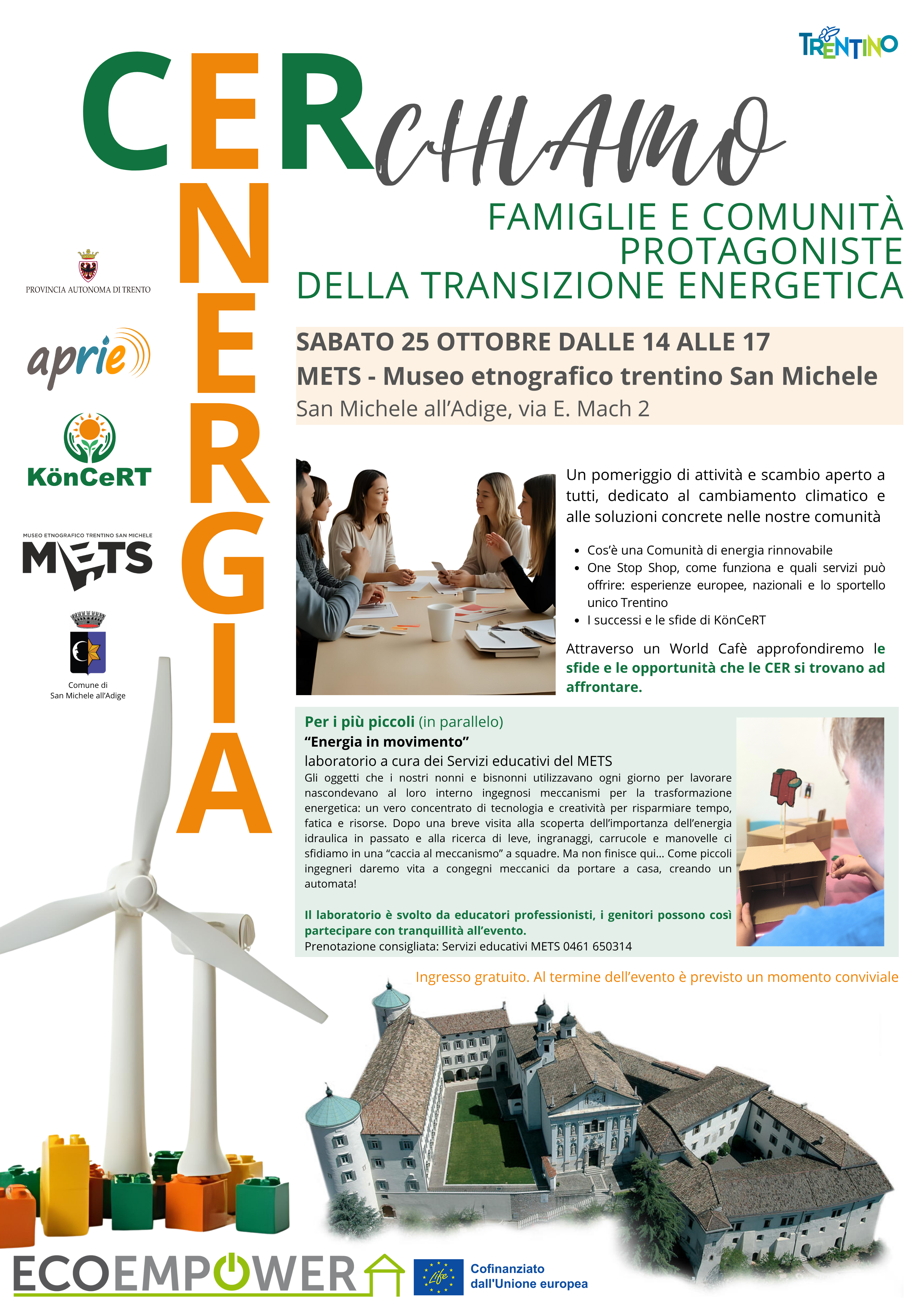Scopriremo insieme cos’è una Comunità di energia rinnovabile (CER), (CER), insieme alla Comunità KӧnCeRT, quali sfide e opportunità si aprono per il futuro, e ne discuteremo in un coinvolgente World Café aperto a tutti i partecipanti.