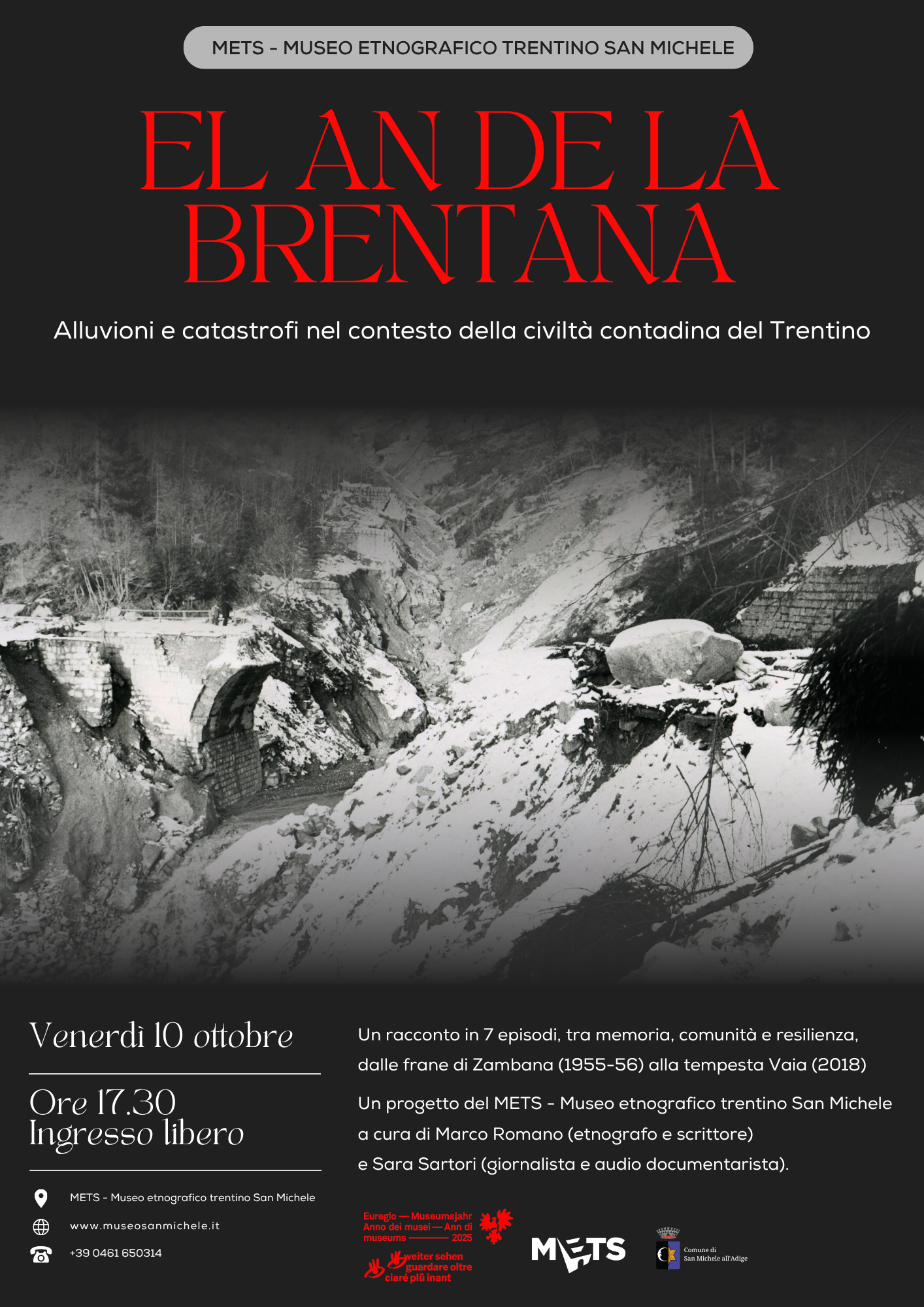 Programma presentazione progetto El an de la brentana. Alluvioni e catastrofi nel contesto della civiltà contadina del Trentino, realizzato dal METS - Museo etnografico Trentino nel contesto dell’iniziativa Euregio Anno dei Musei, Museumsjahr, Ann di museums 2025.
