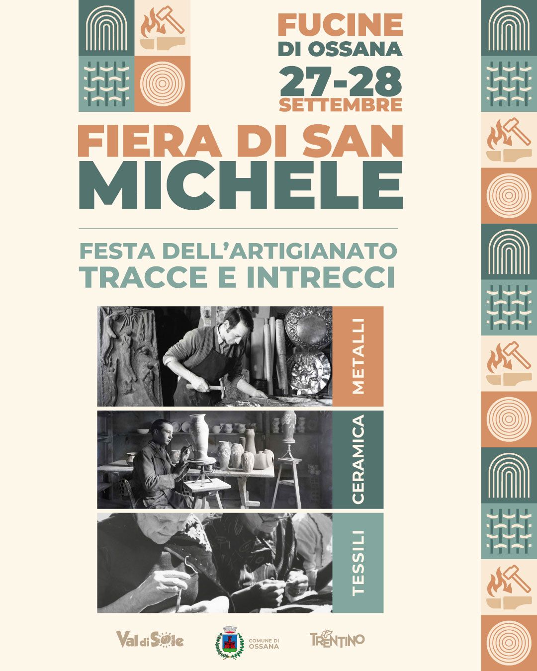 Domenica 28 settembre il borgo di Fucine di Ossana sarà animato da una serie di iniziative dedicate all'artigianato, uno dei settori che meglio identificano e raccontano il territorio solandro: dalle 9.00 alle 16.30, il bocciodromo sarà il cuore della Fiera di San Michele, con una giornata ricca di arte, creatività e laboratori per adulti e bambini.