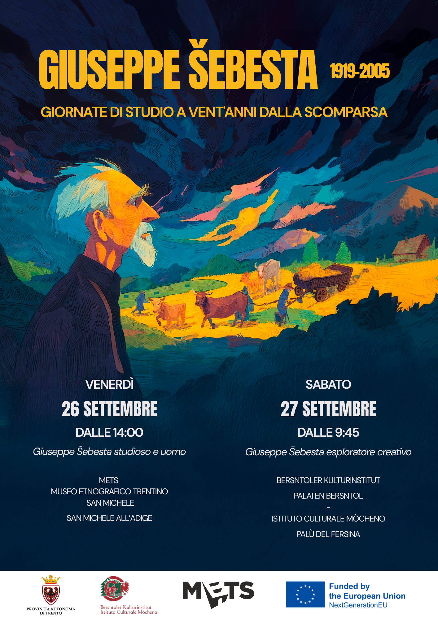 Il METS – Museo etnografico trentino San Michele e il Bersntoler Kulturinstitut / Istituto Culturale Mòcheno ricordano la figura di Giuseppe Šebesta, a vent’anni dalla sua scomparsa, con due giornate di studio dedicate alla sua vita e alla sua opera.