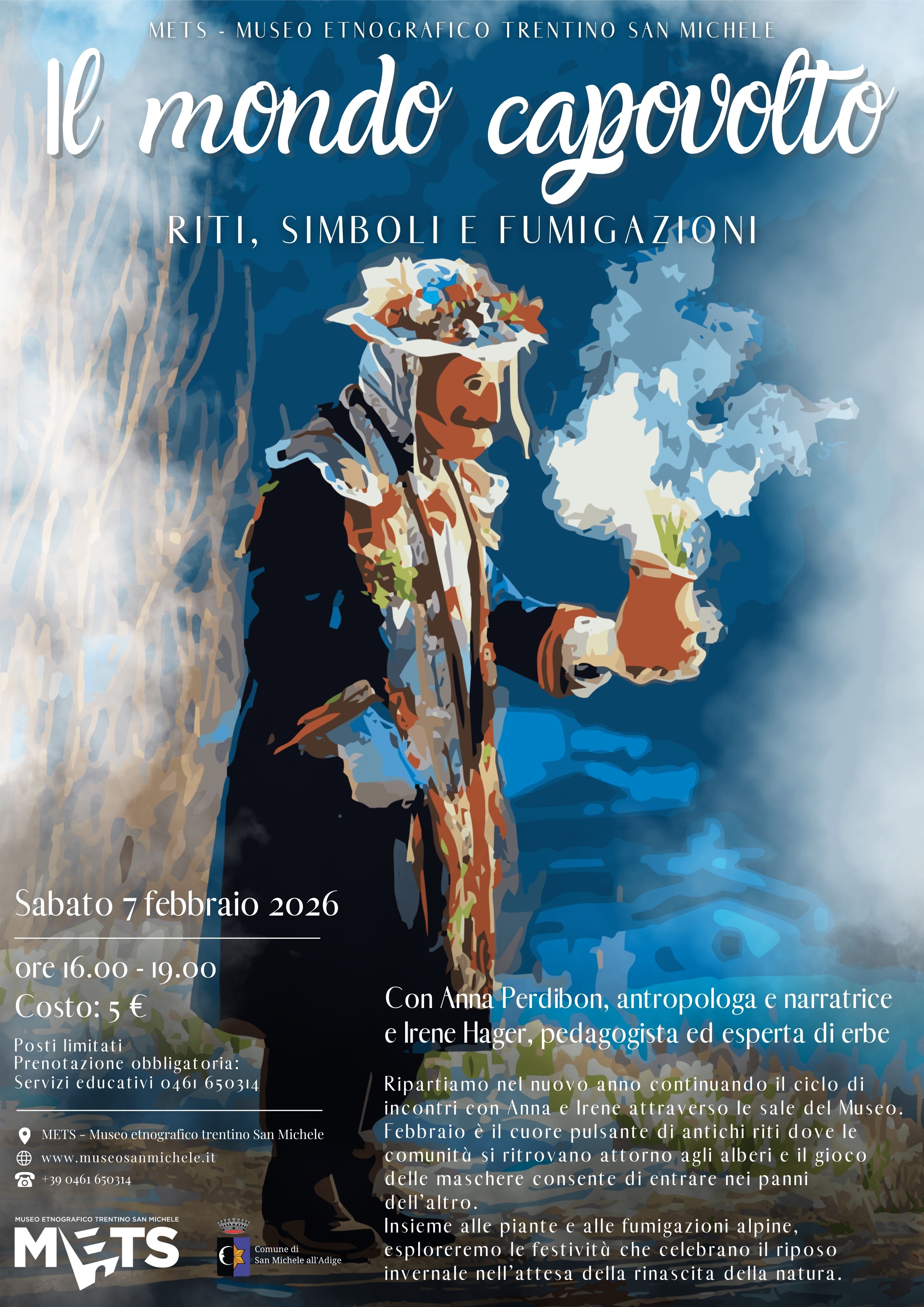 Sabato 7 febbraio, dalle 16.00 alle 19.00, il METS torna a proporre l’esperienza di vivere il rito delle fumigazioni, un viaggio che intreccia antichi saperi, leggende e tradizioni alpine.