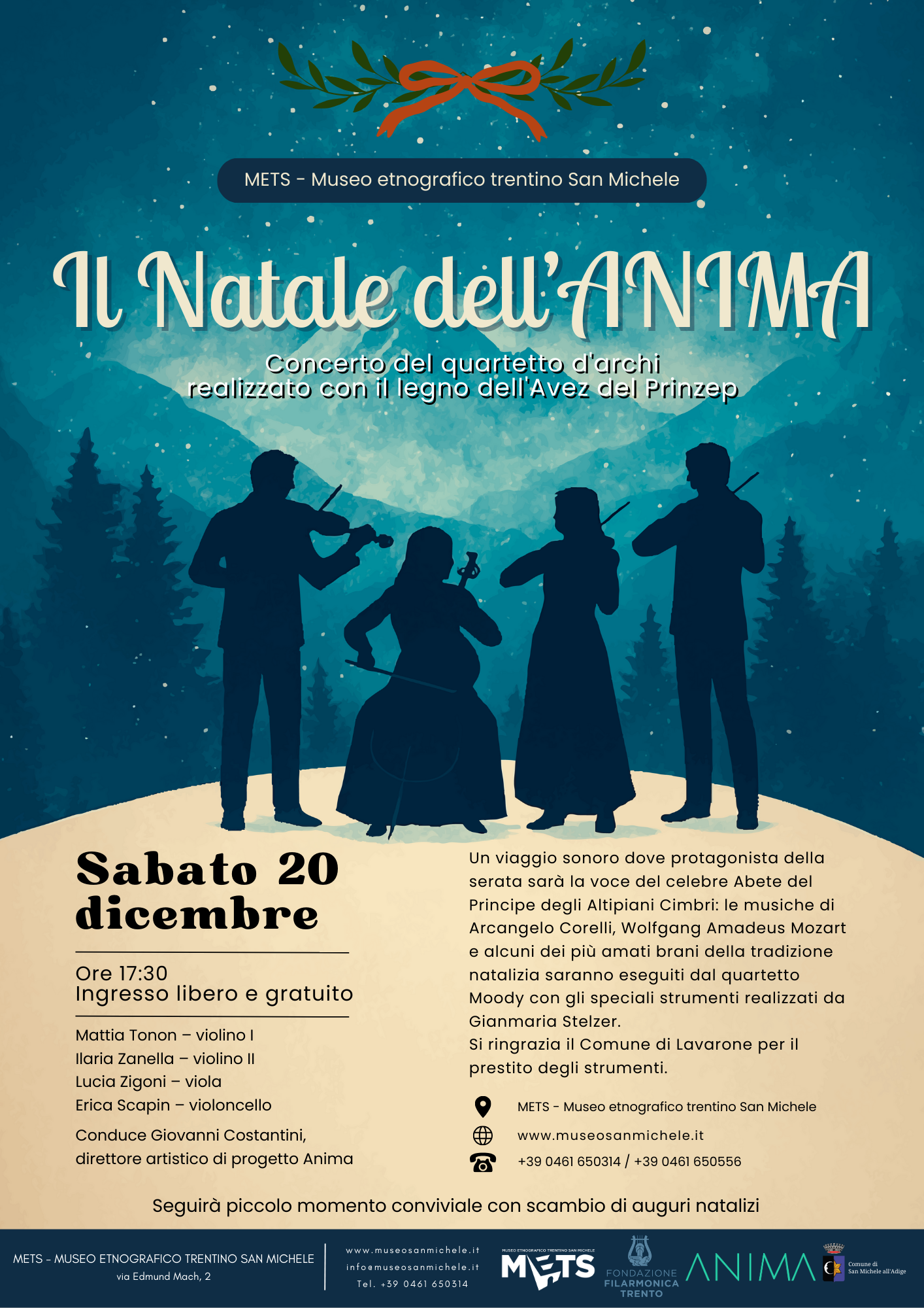 Il METS si prepara a celebrare il Natale con un evento musicale molto particolare. Nella sua suggestiva cornice il Museo etnografico trentino San Michele sabato 20 dicembre 2025 alle ore 17.30 presenta “Il Natale dell’ANIMA”.