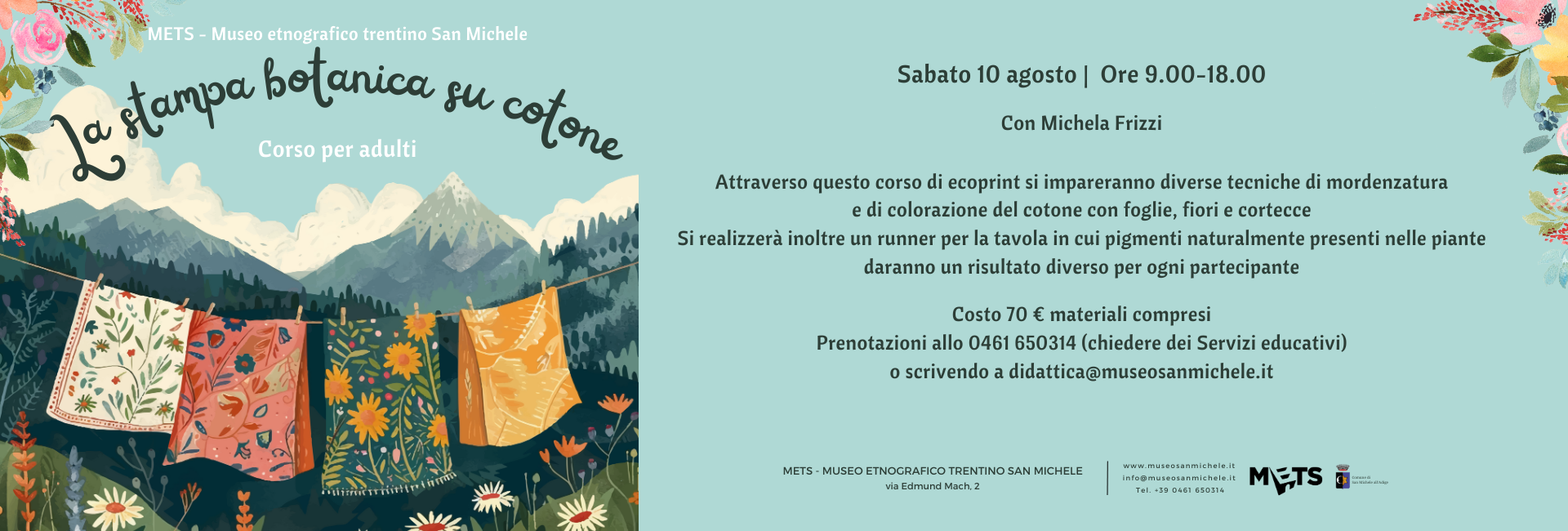 Prenotazioni allo 0461 650314 (chiedere dei Servizi educativi) o scrivendo a didattica@museosanmichele.it