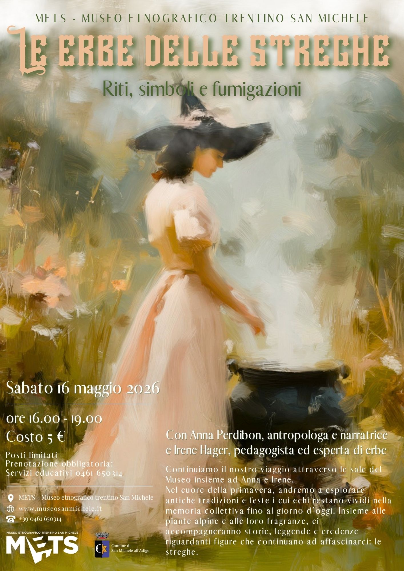 Il METS invita il pubblico a vivere un’esperienza immersiva e multisensoriale attraverso le sale del Museo sabato 16 maggio 2026 dalle 16.00 alle 19.00, attraverso un viaggio tra piante alpine, fragranze, racconti e leggende legate a una figura da sempre avvolta nel fascino del mistero: la strega.