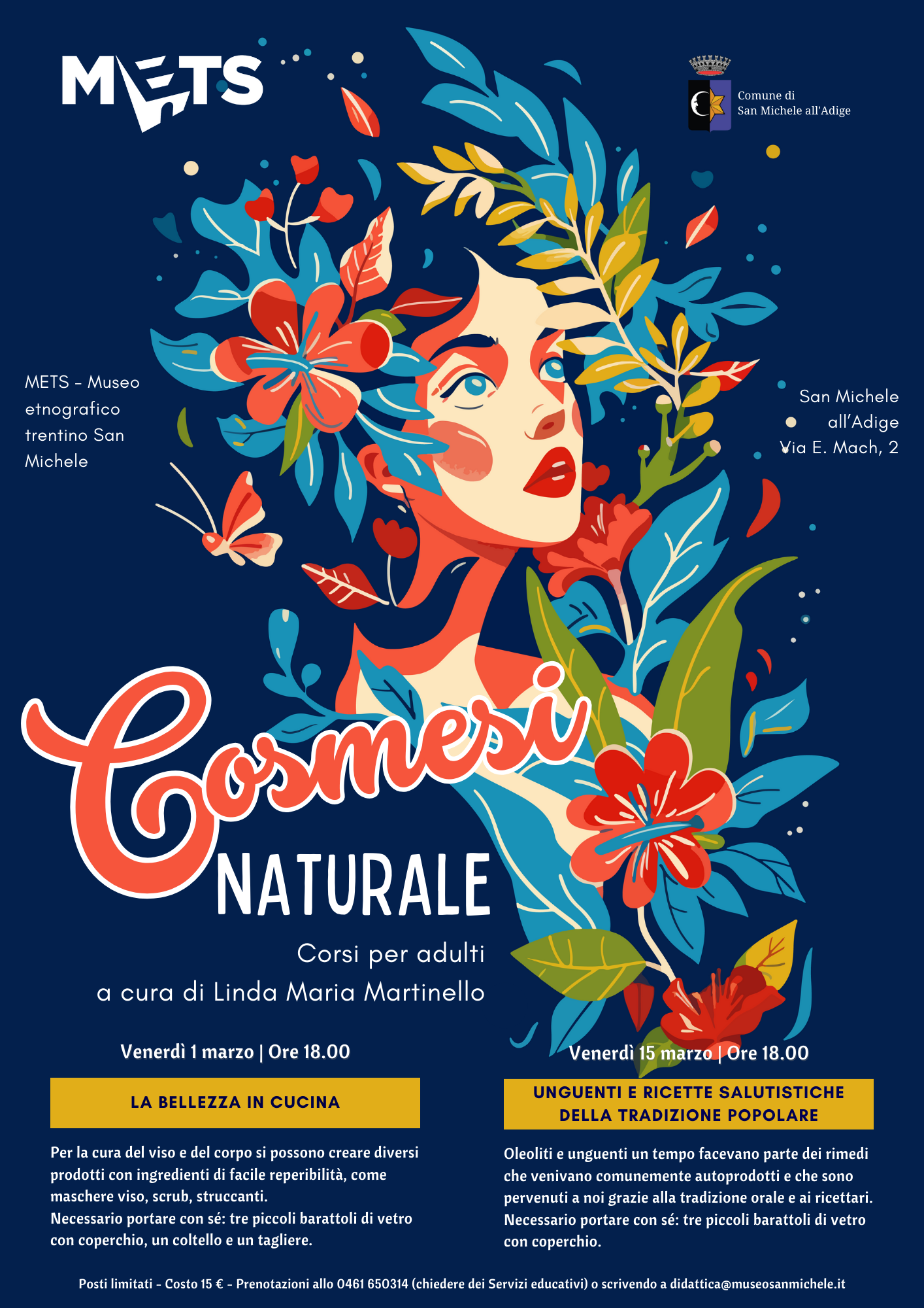 Sono a cura di Linda Maria Martinello i due corsi in programma al METS-Museo etnografico trentino San Michele e dedicati alla “Bellezza in cucina” e a “Unguenti e ricette salutistiche della tradizione popolare. Il primo comincia venerdì 1° marzo alle 18.00 ed è dedicato alla cura del viso e del corpo. Durante il corso si imparerà a creare diversi prodotti con ingredienti di facile reperibilità, come maschere viso, scrub, struccanti. In entrambi i casi è necessario prenotare telefonando allo 0461 650314 (chiedere dei Servizi educativi) o scrivendo a didattica@museosanmichele.it. Il costo per entrambi i corsi è di 15 € compresi i materiali. Chi si iscrive dovrà portare tre piccoli barattoli di vetro con coperchio. Per il corso del 1° marzo anche un coltello e un tagliere.