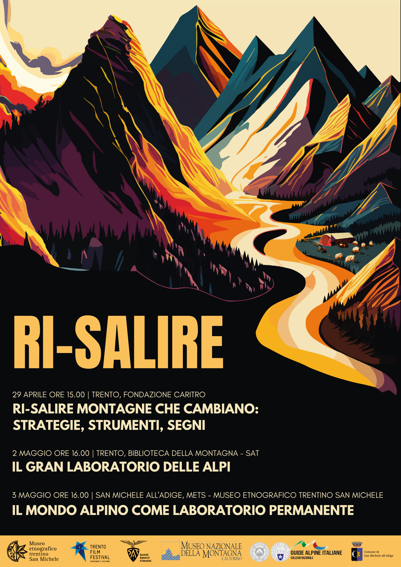 È sintetizzato nel verbo RI-SALIRE il senso dei tre incontri promossi e organizzati dal METS - Museo Etnografico San Michele nell’ambito della 71° edizione del Trento Film Festival. Infatti i tre appuntamenti - Ri-Salire le montagne: strategie, strumenti, segni (Fondazione Caritro 29 aprile ore 15.00), Il Gran Laboratorio della Alpi (Biblioteca della montagna SAT, 2 maggio ore 16.00) Il mondo alpino come laboratorio permanente (METS - Museo Etnografico Trentino San Michele 3 maggio ore 16.00) - affrontano con relatori di fama e competenza alcuni aspetti della relazione uomo/montagna non sempre così evidenti. Un comitato scientifico - istituito appositamente dal Museo - per proporre significative occasioni di riflessione ha individuato nelle scienze antropologiche, etnografiche ma anche storiche, climatiche e di rivalorizzazione culturale il filo conduttore dei tre appuntamenti.