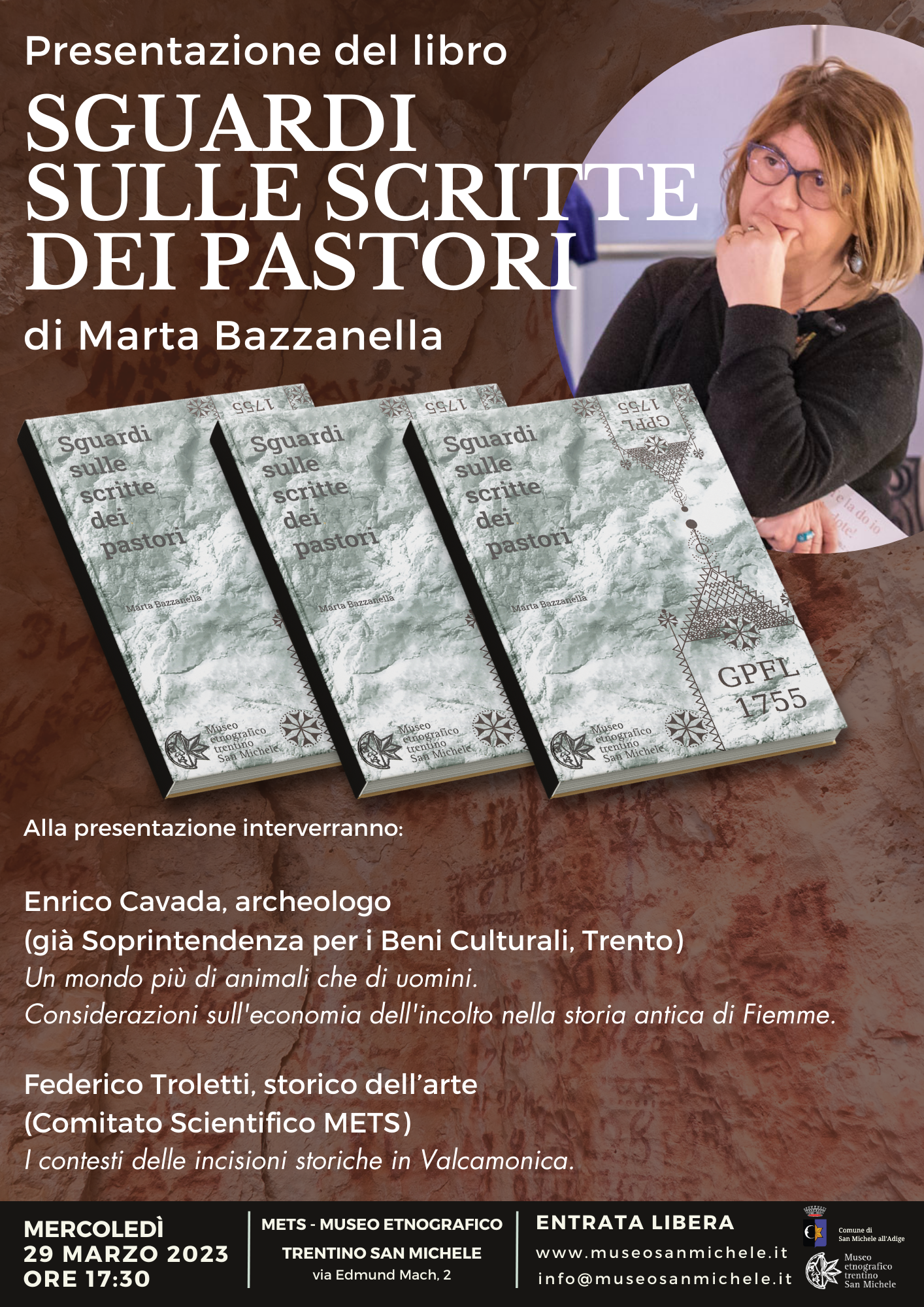 Il massiccio del Monte Cornón si trova sopra i paesi di Tesero, Panchià, Ziano di Fiemme e Predazzo. Tutti i segni/scritte che i pastori hanno lasciato sono arrivati fino a noi perché i custodi delle greggi li hanno dipinti usando dell’ocra rossa reperibile sulla stessa montagna - il ból o ból de bèssa, di pecora -, chiamato così perché in passato serviva a contrassegnare le pecore. Per fissare il colore sulla roccia si avvalevano del latte degli stessi ovini o caprini mescolato, usando un ramoscello di ginepro, all’ocra rossa. La scritta più antica - scrive la curatrice Marta Bazzanella - è di data incerta, fra il 1430 e il 1470. Le scritte rosse sedimentate sulle rocce chiare del Monte Cornón sono visibili percorrendo le strade e i sentieri della montagna. Raccontano frammenti di storie che contribuiscono a “definire” il tessuto socio economico del territorio alpino della Val di Fiemme. La ricercatrice Bazzanella, coadiuvata da Silvia Dal Piaz e Ovidiu Tanase, ha documentato questa preziosa testimonianza con un apparato fotografico notevole nel prestigioso volume che mercoledì 29 marzo alle 17.30 sarà raccontato al pubblico. “Un mondo più di animali che di uomini. Considerazioni sull'economia dell'incolto nella storia antica di Fiemme”, è il titolo del contributo di Enrico Cavada già funzionario della Soprintendenza per Beni Culturali della provincia autonoma di Trento, mentre Federico Troletti, storico dell’arte e componente del Comitato Scientifico del METS, interverrà con “I contesti delle incisioni storiche in Valcamonica”.