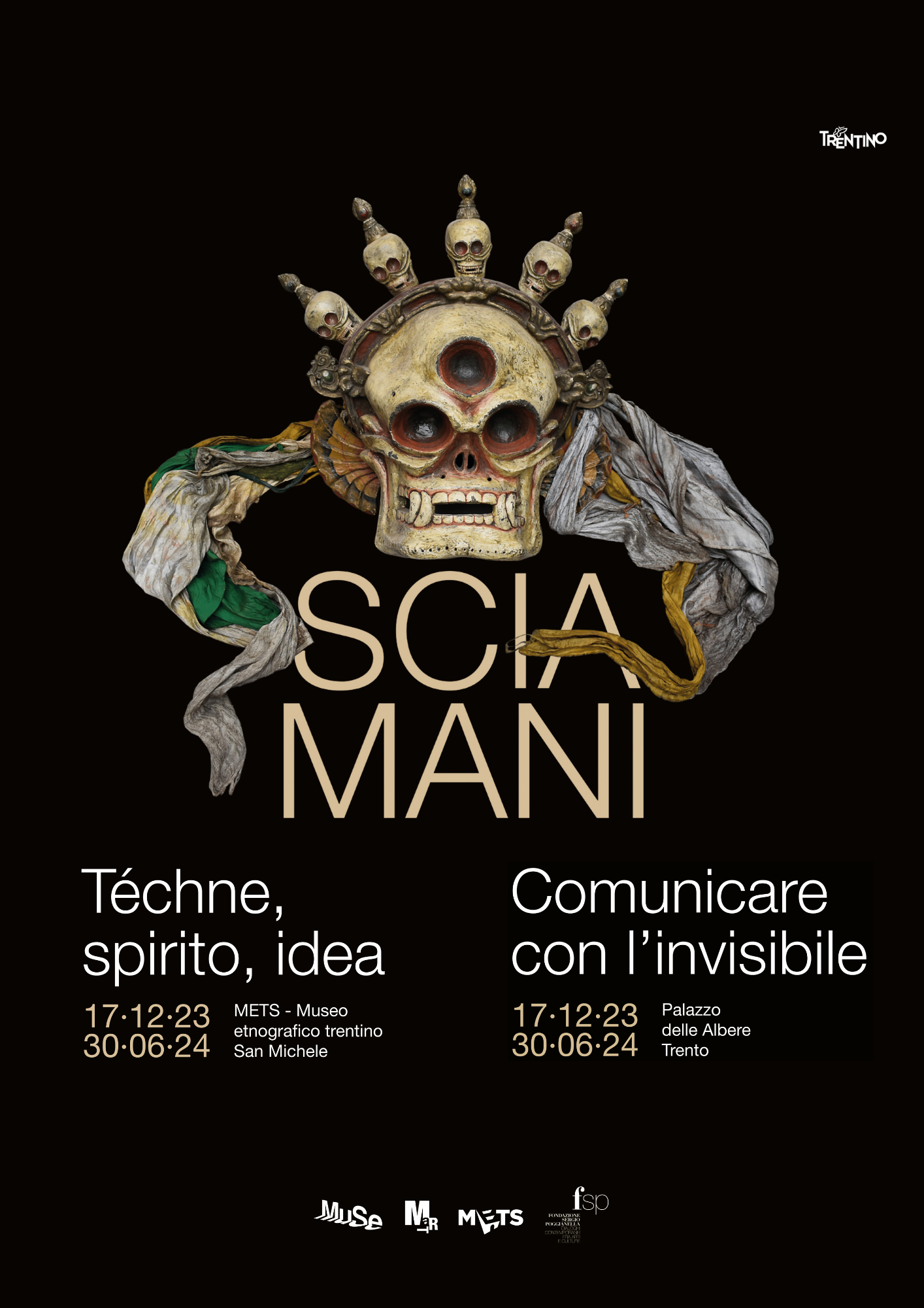 Lo sguardo del METS - Museo etnografico trentino San Michele sulla mostra Sciamani. Comunicare con l’invisibile, è dedicato alle tecnologie popolari e non a caso questa sezione si intitola Téchne, spirito, idea. Curatori della sezione al METS sono Sergio Poggianella, Micaela Sposito e Luca Faoro.
