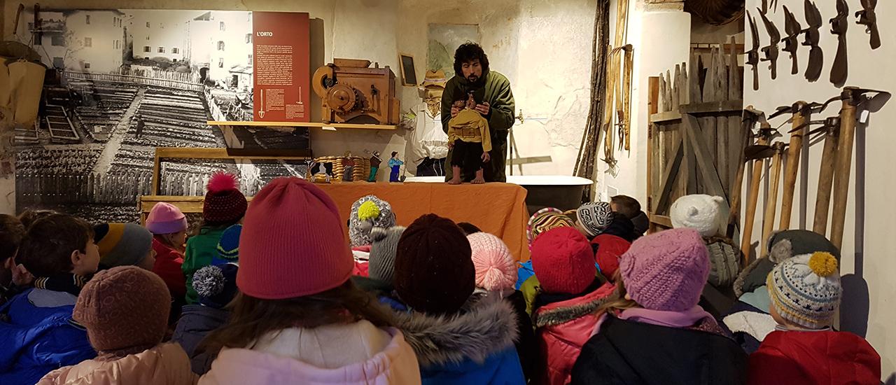 Un viaggio narrativo attraverso le sale del Museo conduce la classe alla scoperta di fuoco, terra, aria, acqua, per svelare come i quattro elementi siano stati usati, e lo siano ancora, dagli uomini ma anche dagli stessi bambini quotidianamente. Luciano Gottardi, spostandosi di sala in sala, teatro di ogni scena, anima storie, fiabe o leggende legate agli elementi che sono da vedere, udire, annusare e toccare.