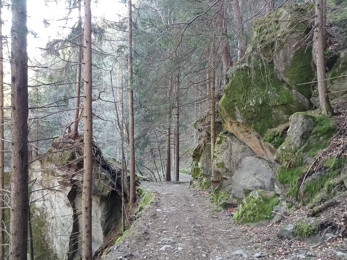 Ischiazza è costituito da una manciata di ruderi, un minuscolo paese “fantasma” situato nel fondovalle del Comune di Valfloriana a breve distanza dal torrente Avisio, ai margini di una antica golena. Oggi come ieri Ischiazza è raggiungibile solo con una mulattiera. Il villaggio, costituito da 6 o 7 ruderi di casoni e da una piccola chiesetta ottocentesca, era stato costruito con pietre reperite sul posto, calce lì estratta e legname ottenuto dall’impressionante estensione dei boschi. I campi che in passato bordeggiavano il villaggio vengono tutt’oggi ricordati come molto fertili dagli abitanti di Villaggio: “Lì si poteva coltivare qualunque cosa, meglio che sulla montagna”. Un essiccatoio collettivo permetteva il trattamento del mais, che poi veniva sfogliato. Si viveva anche grazie all’allevamento minuto di ovini e bovini.