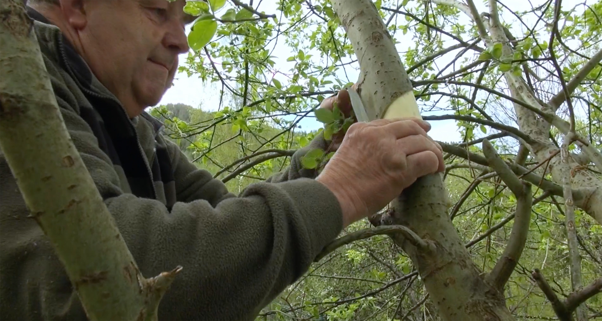 Note: Oboe di corteccia, realizzato con salice e composto da due elementi: un'ancia doppia di corteccia di salice e un cono di corteccia avvolta in maniera elicoidale. All'estremità più larga il tronco di cono è fissato con una piccola spina di legno - realizzata al momento - che impedisce lo srotolamento della corteccia. L'ancia è inserita all'estremità del cono più stretta. Il sig. Pietro non conosce il nome dello strumento. L'ancia, invece, è chiamata “fürze” (scoreggia). La corteccia dell'ancia viene spellata per circa una decina di mm.