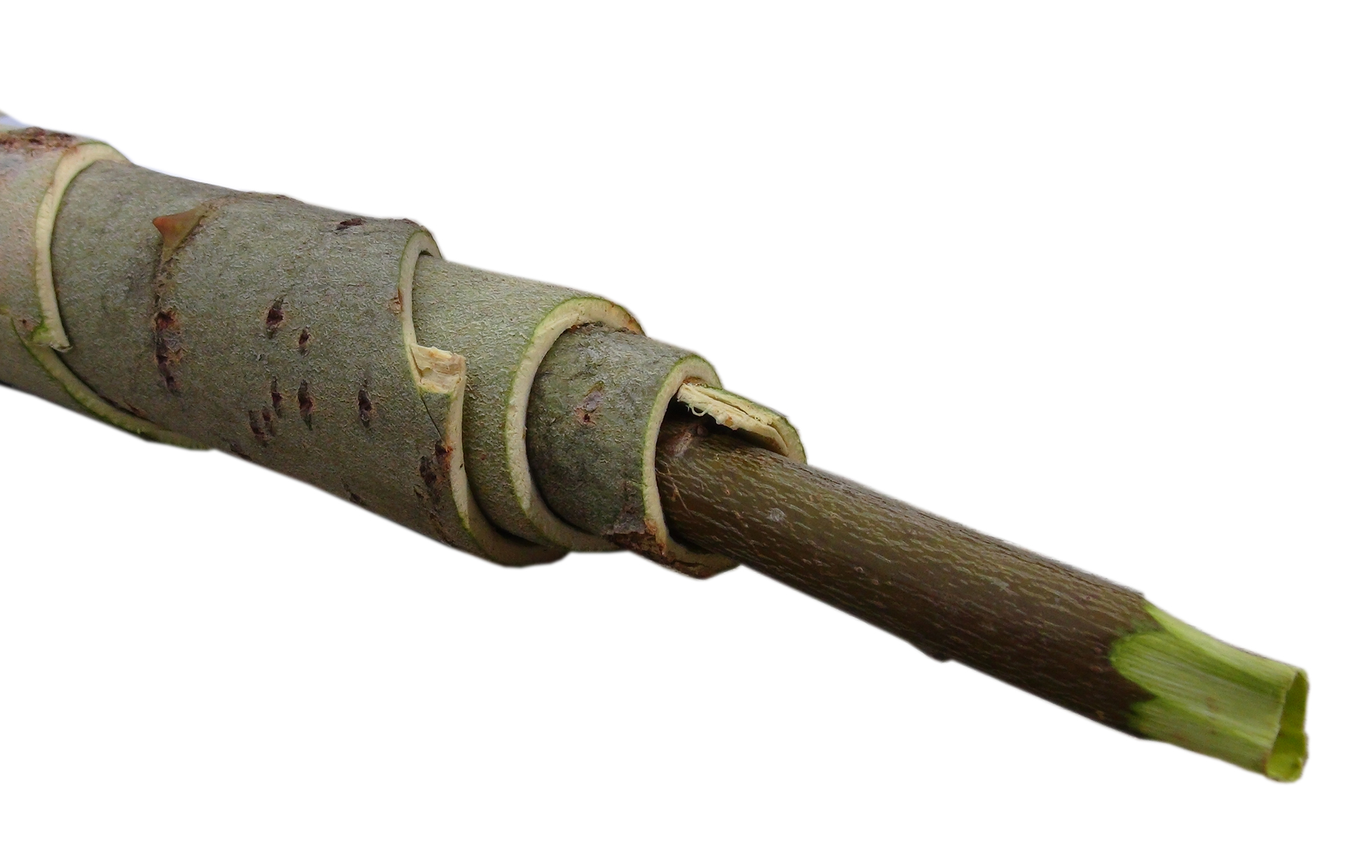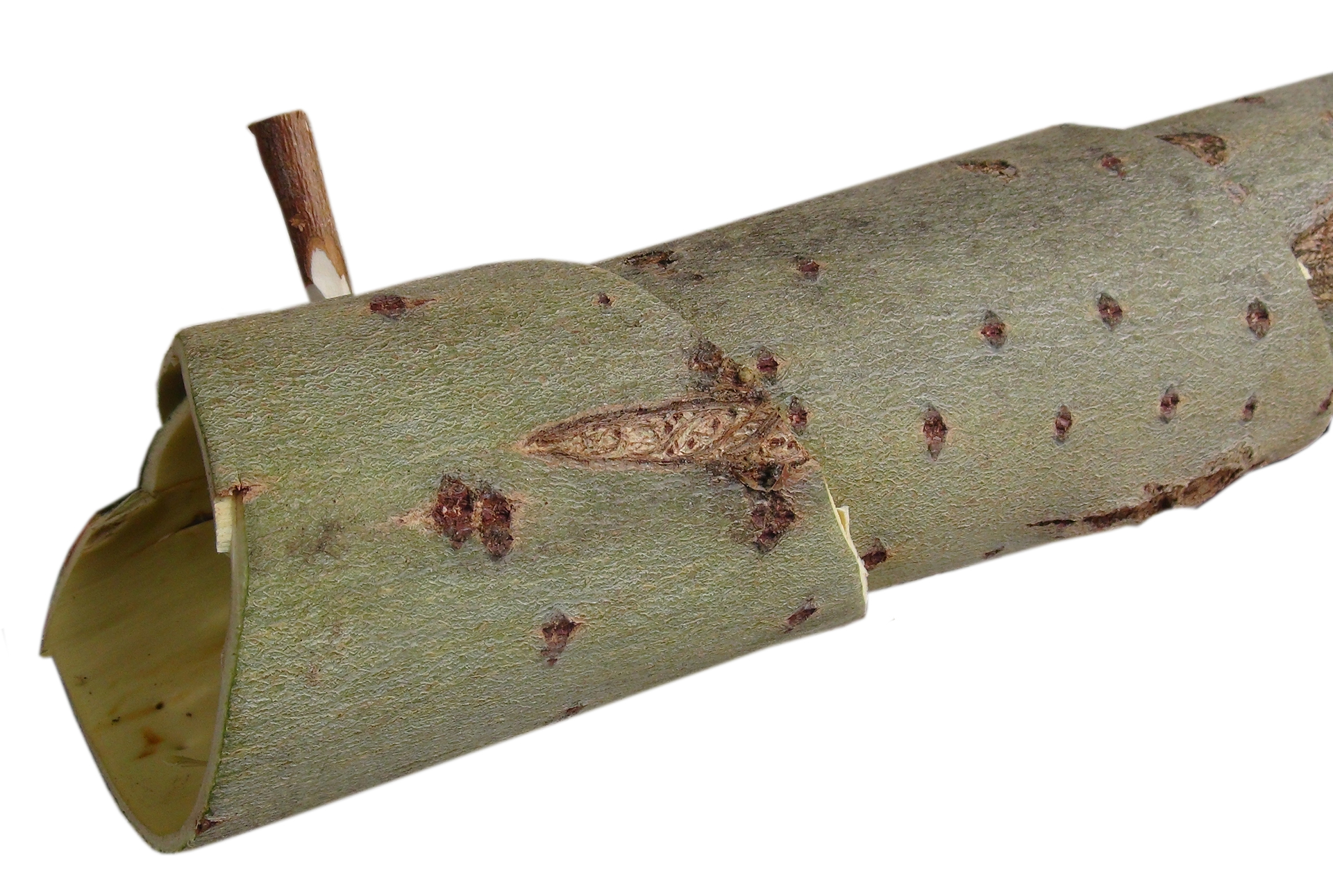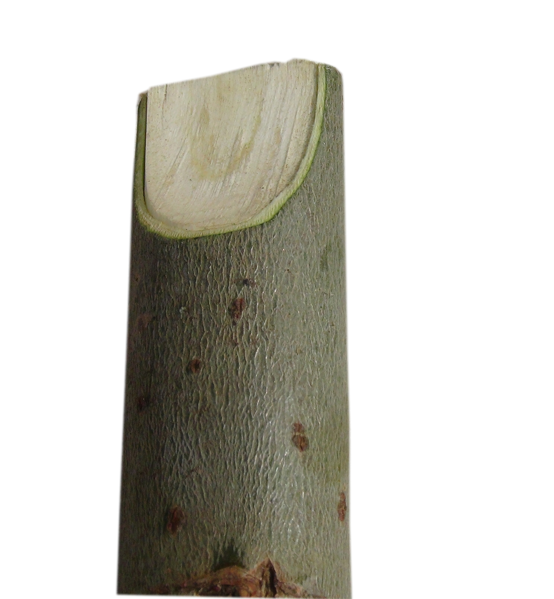 Note: Flauto con tappo. Per togliere la corteccia dallo stelo non l'ha battuta ma ha decorticato a striscioline la base. Con la sola forza di torsione è riuscito a staccare e a sfilare la corteccia.