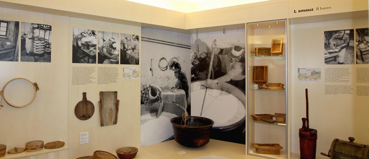 La nuova sezione del Museo Ladin de Fascia «L Malghier» è dedicata alle attività dell’allevamento e della caseificazione, presenti nella valle sin dalla preistoria e consolidatesi attraverso la pastorizia transumante, al punto di caratterizzare il sistema economico della Comunità di Fassa. La lavorazione del latte, del burro e del formaggio, così come la gestione comunitaria dei pascoli e degli alpeggi nel corso dei secoli vengono documentati attraverso oggetti, testi e fotografie frutto del trentennale lavoro di raccolta etnografica dell’Istituto Culturale Ladino. La sezione ha sede presso il Caseificio sociale Val di Fassa, in cui si può assistere alle lavorazioni grazie alle vetrate che si affacciano sulla zona produttiva. I prodotti si possono degustare nell’adiacente punto vendita.