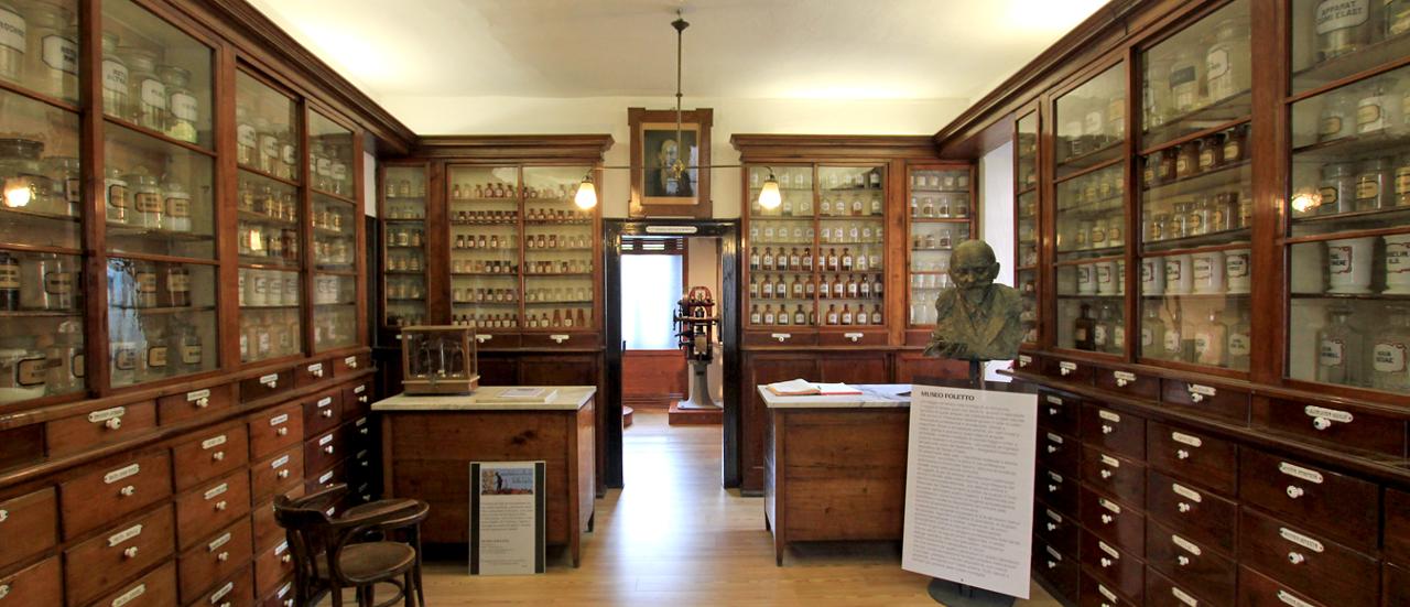 A partire da una raccolta minuta di erbe medicinali da sempre ampiamente praticata in tutta la valle, nel laboratorio farmaceutico Foletto si realizzavano grandi quantità di preparati e prodotti, molti dei quali propriamente registrati – fiale iniettabili, amari corroboranti, sciroppi di frutta… – e regolarmente distribuiti negli ospedali e nelle case di cura. Si tratta, in effetti, di un’attività che ha costituito, qui come altrove sull’arco alpino, una piccola ma significativa risorsa. L’odierna esposizione documenta l’evoluzione della tecnologia farmaceutica, da una serie di alambicchi e pestelli sei-settecenteschi, fino ai giorni nostri, con le attrezzature oggi utilizzate per la produzione di sciroppi, amari, liquori.