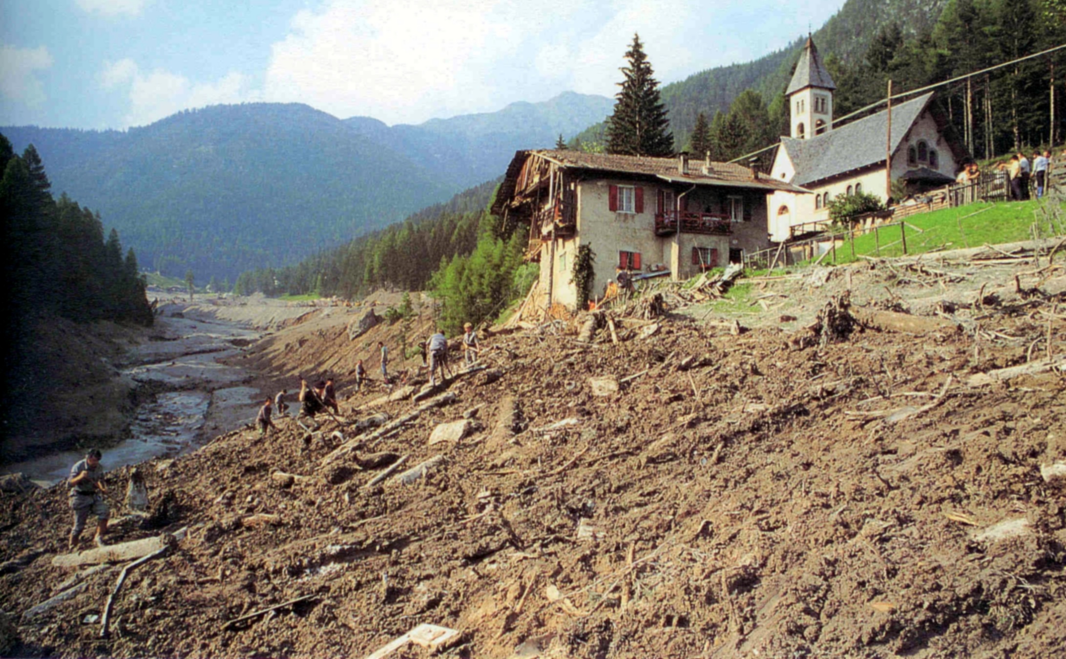 Val di Fiemme, 19 luglio 1985. A Stava è un giorno come un altro, poi all’improvviso uno schianto, un boato, una nuvola bianca che si gonfia. Un mostro di fango, alberi e detriti lanciato a novanta chilometri all’ora travolge e distrugge alberghi, case, capannoni, ponti. Sono crollati i bacini di decantazione della miniera di Prestavel. È il Vajont del Trentino. Muoiono 268 persone. Pietro, Alma, Romano e Franca rivivono con le lacrime agli occhi quegli istanti e quei giorni che hanno stravolto le loro vite per sempre.