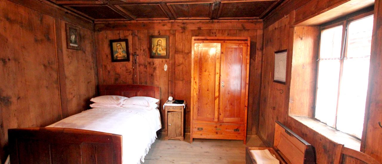 La casa, al centro del paese, testimonia l’evoluzione dell’abitare contadino almeno degli ultimi due secoli. Abitata fino al 1991, nel 1998 è stata acquistata dal Comune di Peio per valorizzarla a fini museali. Grazie all’associazione Linum, impegnata nel progetto di ripristino e ora di gestione, è aperta per visite a piccoli gruppi. All’interno, su tre livelli e il sottotetto, l’ambiente con la cucina economica, due cucine con focolare aperto, i forni per il pane in cui ancora oggi si possono cuocere i panéti, la stua con stufa in maiolica, gli abiti e la biancheria dell’ultima residente ancora appesi nell’armadio e riposti nel cassettone. Arredi e suppellettili sono quelli originali a corredo della casa. Le scàndole del tetto sono lavorate secondo l’antica tecnica.