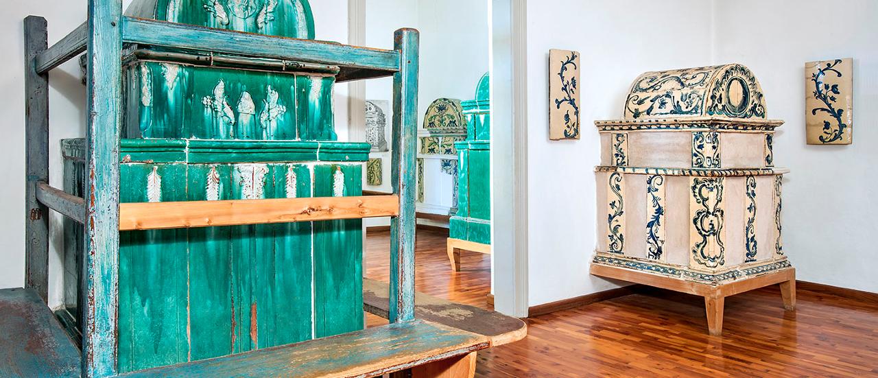 Nella ricca collezione sono rappresentate le due tipologie principali della stufa a olle: a “muletto” e a “torretta”.